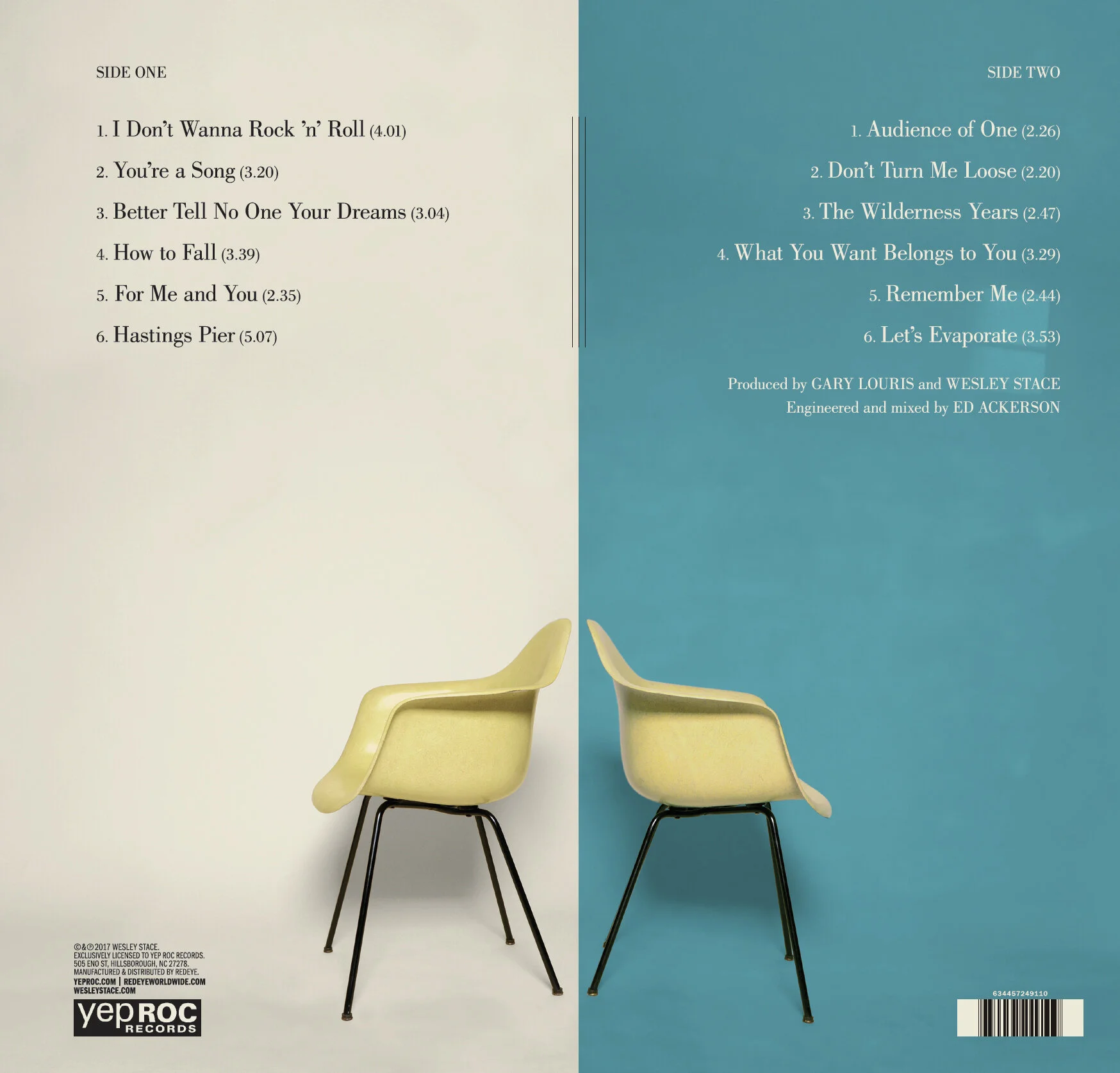 All songs written by Wesley Stace and published by TOWNSONGS (ASCAP), administered by Union Square Music Songs Ltd (PRS)/subpublished in the U.S. by BMG Gold Songs (ASCAP), except Let’s Evaporate by Wesley Stace and Chas Cronk (TOWNSONGS (ASCAP), Ltd/Sony/ATV Music Publishing), and Don’t Turn Me Loose by Greenfield/Cook (New Dayglow BV)